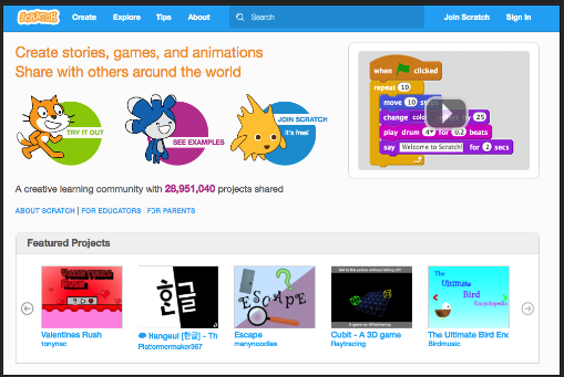 ‘With Scratch, you can program your own interactive stories, games, and animations — and share your creations with others in the online community…Scratch helps young people learn to think creatively, reason systematically, and work collaboratively — essential skills for life in the 21st century.’